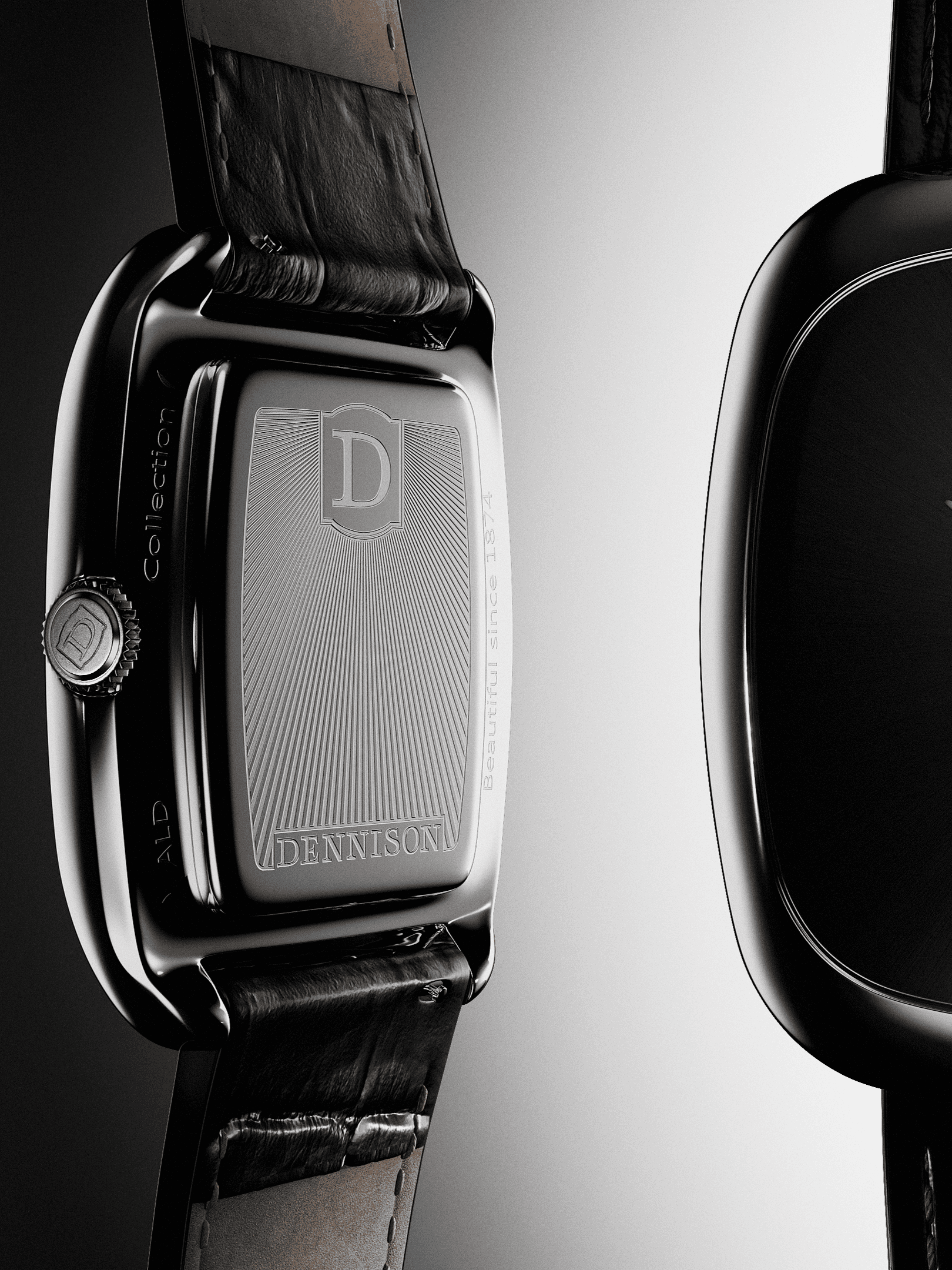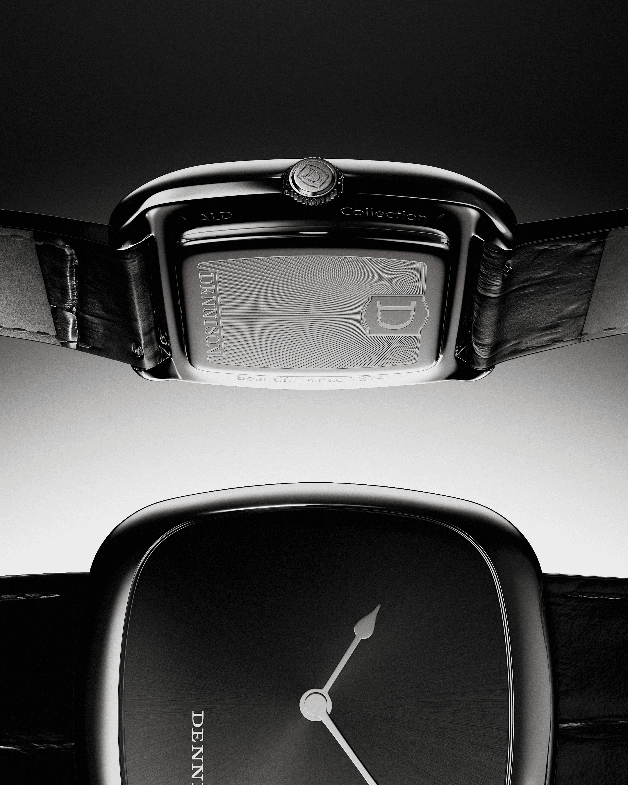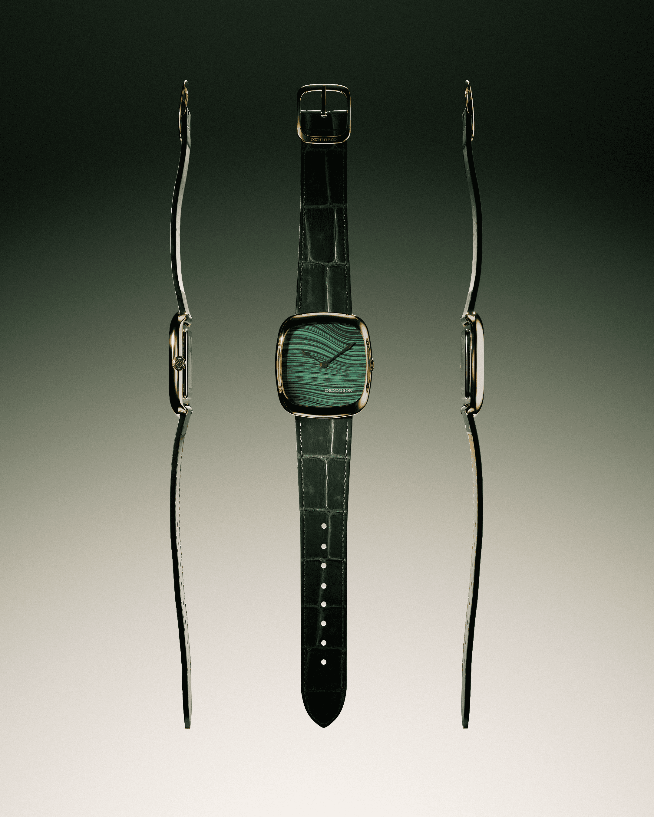 For the unique stone dials I build transitions from one case version to another, displaying both of the available options gold and silver.